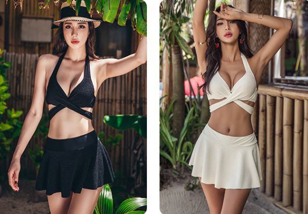 ウエストのスリットとクロスリボンがセクシーなセパレート水着です☆