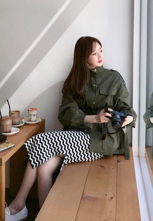 ギザギザのボーダーが可愛いタイトスカート。