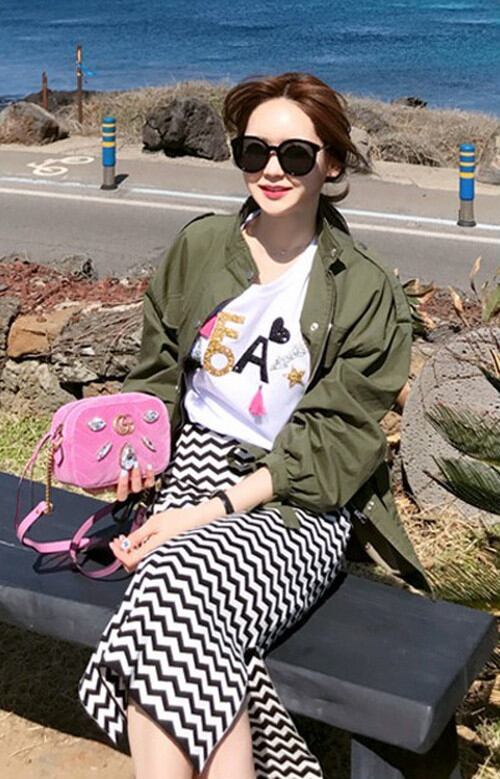 大人っぽいスタイリングにも取り入れやすい幾何学模様。