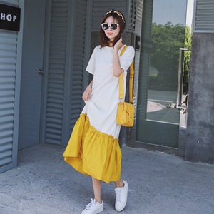 トレンドデザインを女性らしく着こなせるてナチュラルカットソーワンピース1枚でおしゃれなドッキングデザイン