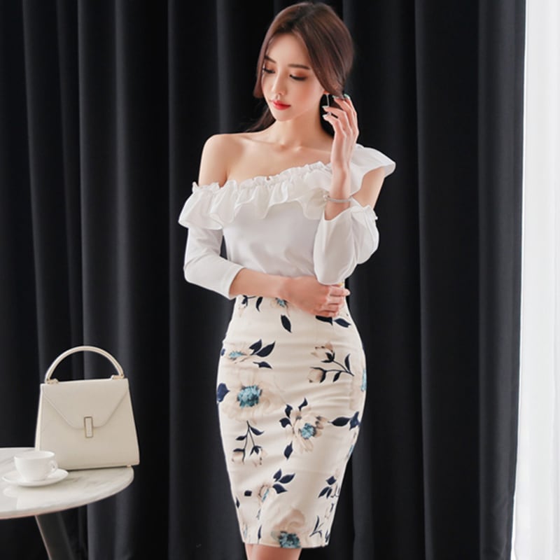 花柄のミディスカートはシンプルなトップスとの合わせがおすすめです。