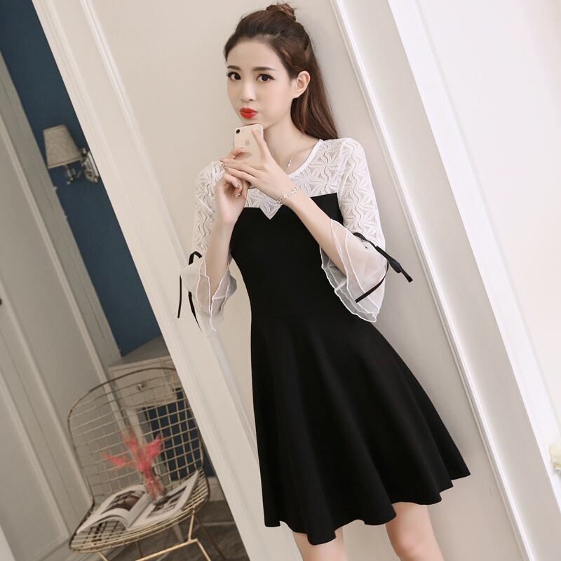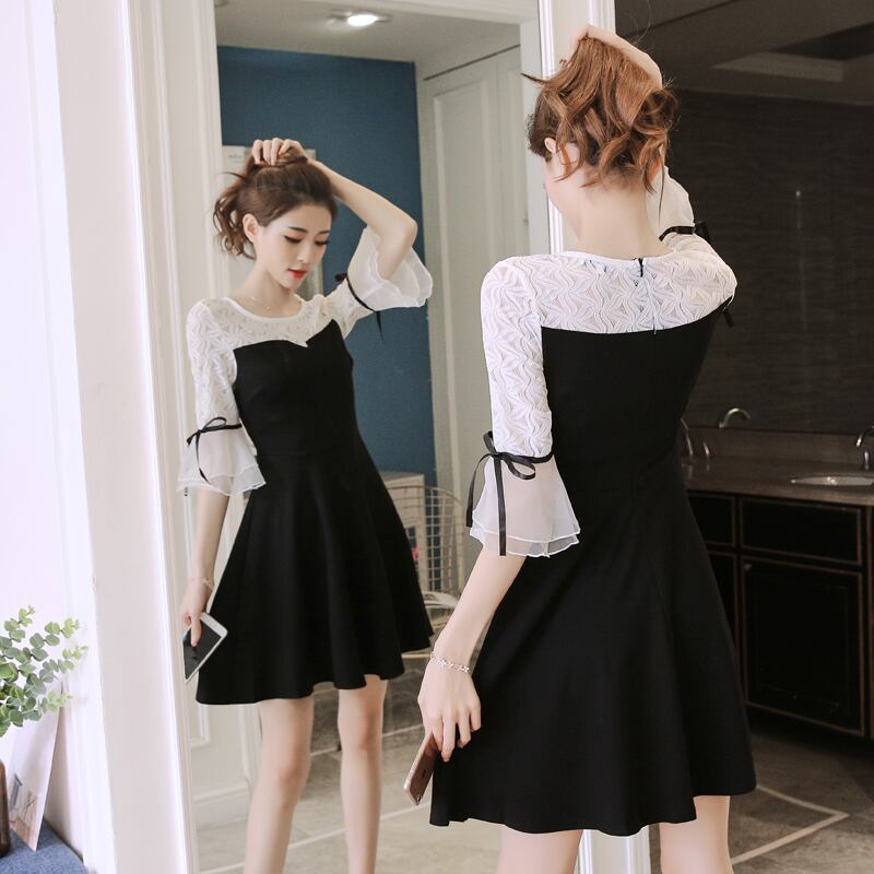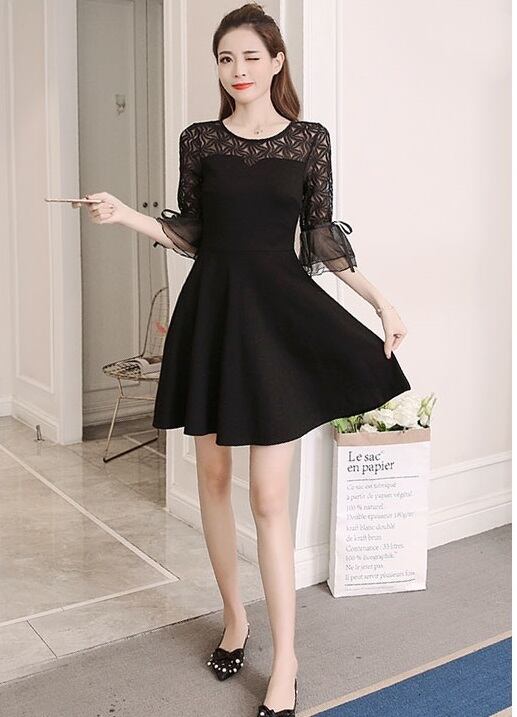 デコルテから袖にかけてのレースが可愛らしいAラインのワンピースです。