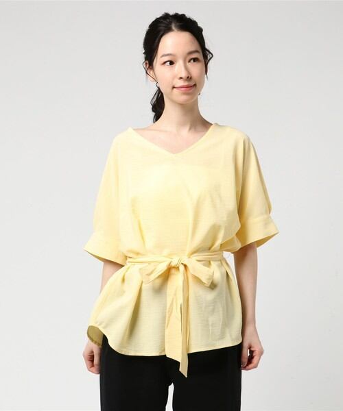 袖ピンタックスリーブ&ロールアップ袖デザインが、お洒落な印象。