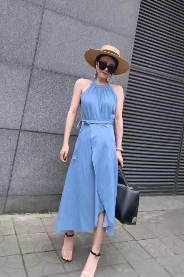 デニム素材 ホルターネックブラウス&スカート セットアップです。