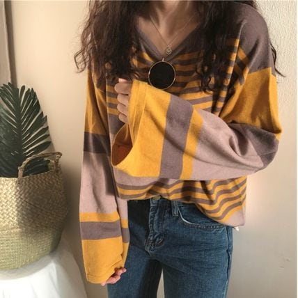 NEW カジュアル マルチ レトロボーダー ロングスリーブ トップス