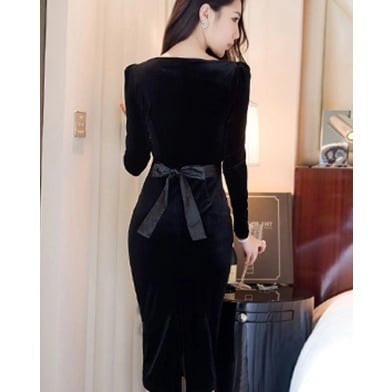 とってもかわいい、ウエスト結びリボンがポイントの、ボートネック、長袖、