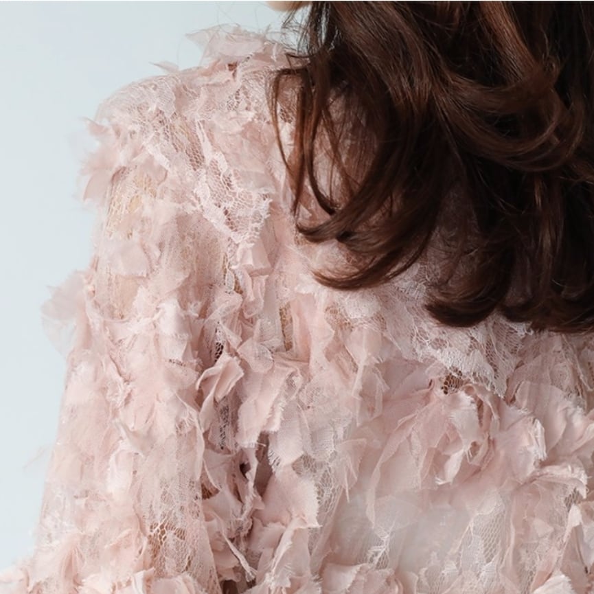 *羽の様なレースがオシャレさとボリューム感をアップしてくれるブラウスです。*